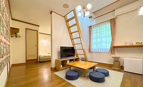 ソファベッドで4名様まで対応した広めのお部屋です。海外直輸入の家具でお部屋をヨーロッパ調で統一した童話の世界のようなお部屋です。